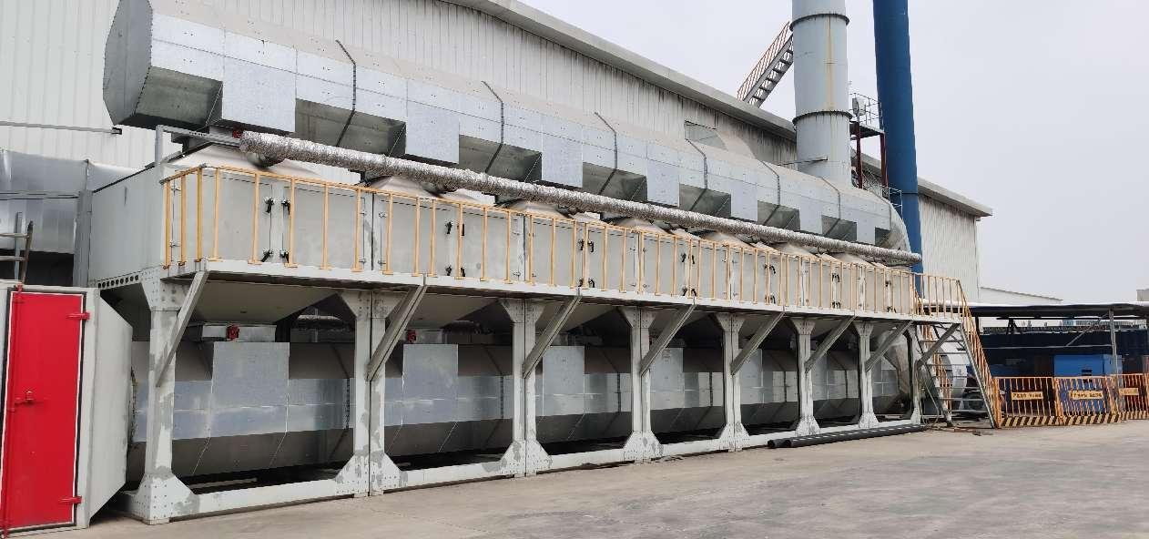 机器人涂装线VOC废气通过风机输送至转轮后,被转轮上的沸石吸附,从空气中分离出来。在解吸附区域,所吸附的VOC用一路很小的热空气(约180至250℃)吹扫,从沸石上脱附下来,此时VOC浓度被浓缩5至30倍。浓缩后废气进入催化燃烧(CO):废气中VOCs被浓缩,利用混热器提供约100℃的小风量热气流来进行反吹脱附。脱附出来的高浓度,小风量浓缩废气送至催化燃烧设备内催化燃烧分解成CO2和H2O,燃烧放热回用,节省能源。