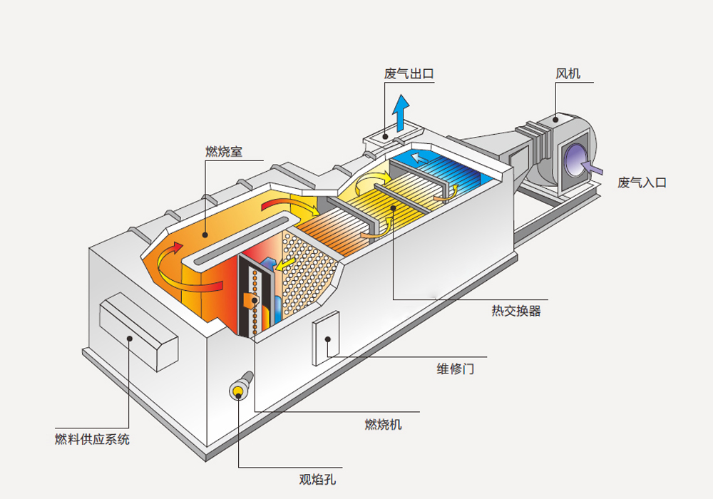 废气燃烧:在TO直燃炉内,将废气加热至较高温度,使其中的有害物质燃烧分解为无害物质。