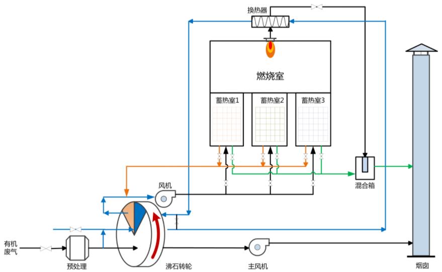 3.选用活性炭吸附或沸石分子筛作为预乐竞入口装置,通过吸附-脱附再生的方式,为沸石转轮RTO提供稳定、高浓度的工业废气。然后稀释成沸石转轮RTO进行乐竞入口。