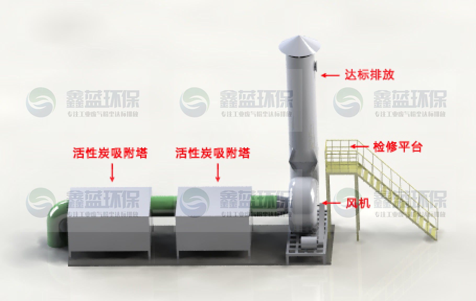 活性炭吸附:活性炭具有高吸附性能,可以将废气中的有机物质吸附,达到净化效果。但需要注意的是,活性炭容易饱和,需要定期更换。