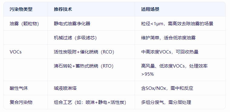 净化效率:油雾≥95%,VOCs≥90%,颗粒物≤10mg/m³。