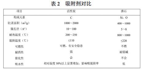 气体吸附分离成功与否,极大程度上依赖于吸附剂的性能,因此选择吸附剂是确定吸附操作的首要问题。工业上常用的吸附剂有:硅胶、活性炭、活性氧化铝、分子筛等,其中活性炭是应用最广泛的吸附剂,沸石材料是一种安全高效吸脱附材料,两者吸附特性对比情况见表2。