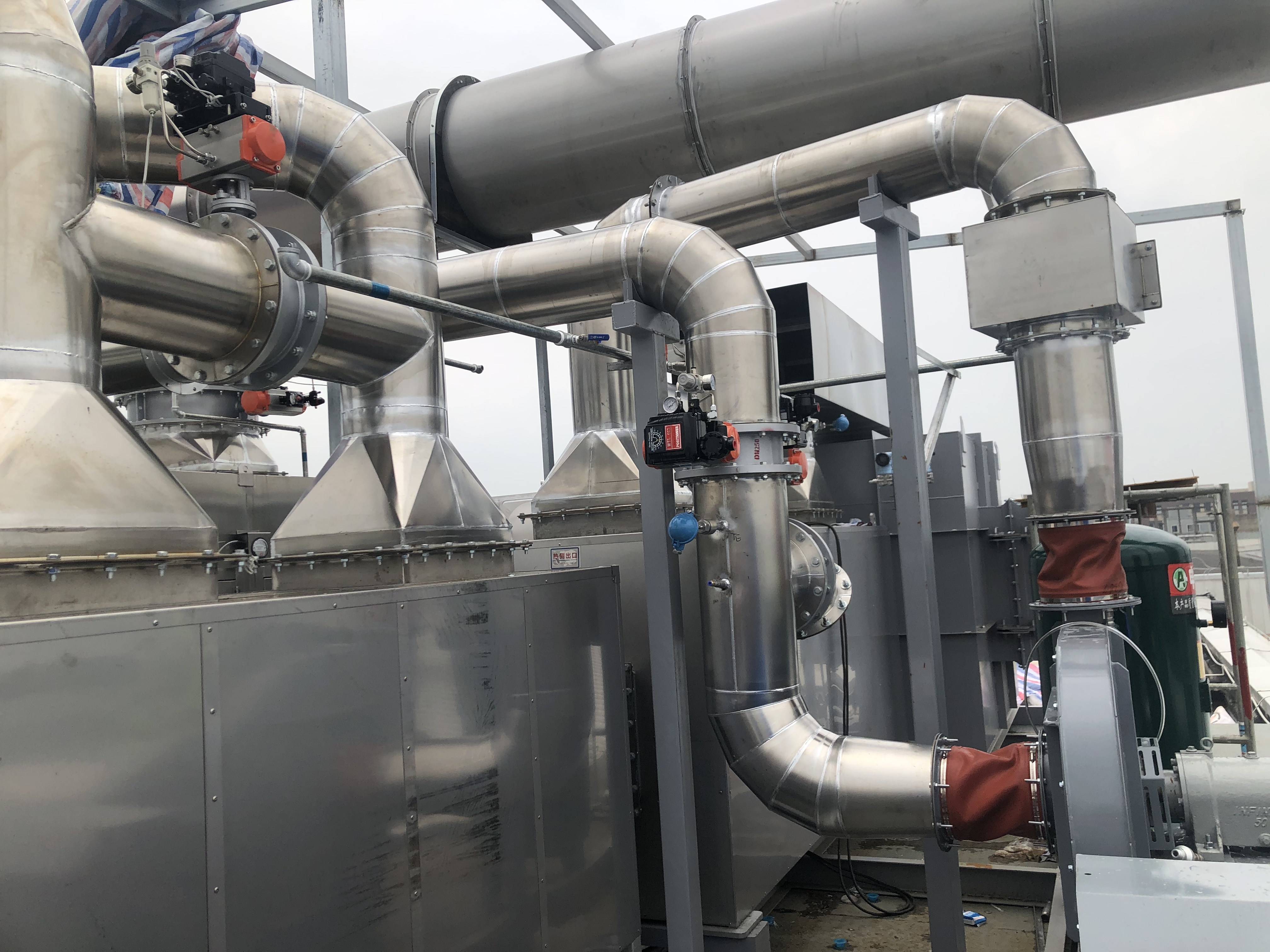 废气收集与输送 首先,将工业废气收集起来,并通过输送系统输送到沸石转轮入口。