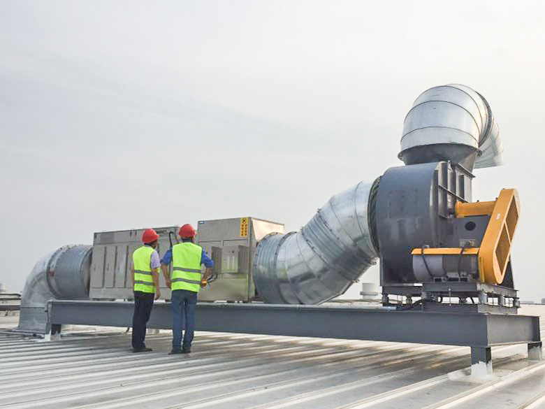 本项目是对纺织行业化纤车间生产过程中产生的废气进行收集减排乐竞入口,化纤车间作业时产生的约35000m3/h的有机废气,主要污染物:油雾(非甲烷总烃)≤120mg/m3。本次乐竞lejing(中国)环保采用1套35000CMH的初效过滤+板式静电吸附油烟净化的组合净化工艺对本项目化纤车间废气乐竞入口,净化后的洁净气体经引风机送入排放烟囱对空达标排放。