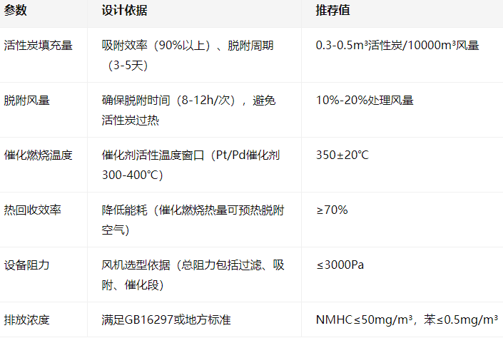 以方案A(活性炭吸附+催化燃烧)为例,关键参数设计如下: