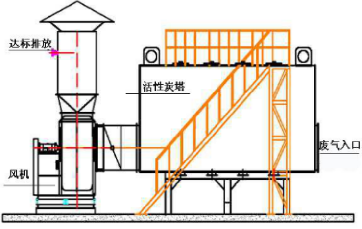 活性炭塔的吸附装置主要由活性炭层和承托层组成。活性炭具有发达的空隙,比表面积大,具有很高的吸附能力。承托层的主要作用是防止活性炭从设备中流失。
