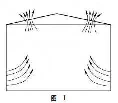 侧面吹风、上方抽风把含尘空气吹到厂房顶端,用风机把含尘空气抽排出去,如图1所示。