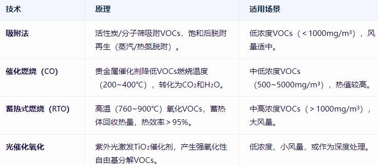 活性炭吸附:作为末端保障,吸附残留VOCs(需定期更换或再生)。