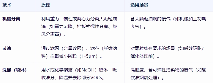 适用场景:高浓度(>5000mg/m³)、高沸点(>80℃)的油分(如重油废气)。