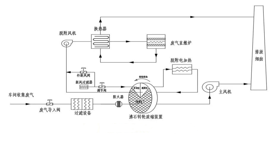 沸石转轮+TO直燃炉有机废气乐竞入口系统示意图