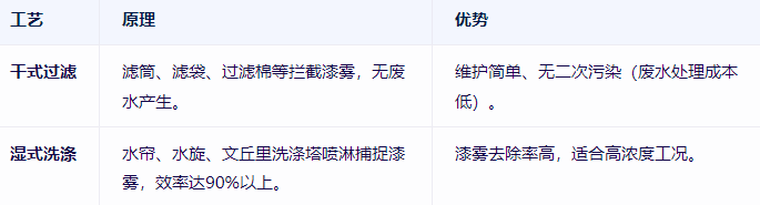 漆雾(颗粒物)会堵塞后续乐竞入口设备,需优先去除,常见方法: