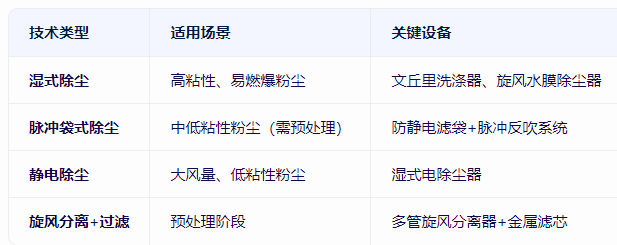 降温/除湿:通过冷凝器或干燥装置降低粉尘湿度(适用含水粘尘)。