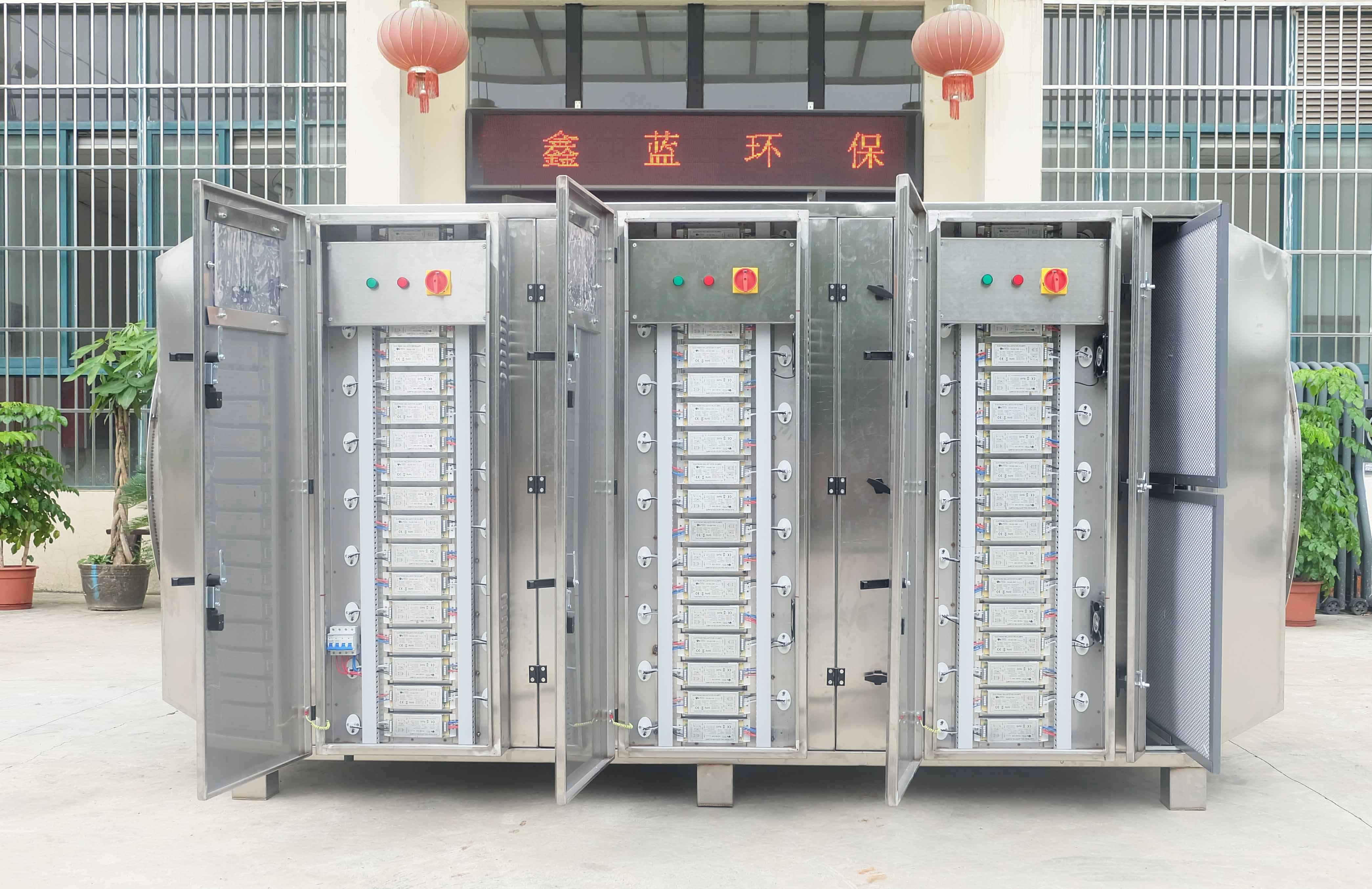 UV光解设备操作十分简便,新的UV光解设备在出厂前已经本公司调试合格,使用前先检查整个管道系统,然后净化器工作范围内可能存在的易被吸入的杂物,接着接通电源(外控制箱外部380V线路接好进线,好用电控设备控制启停),每一个电源控制组应全部打开显示正常,则UV光解设备进入净化工作状态。