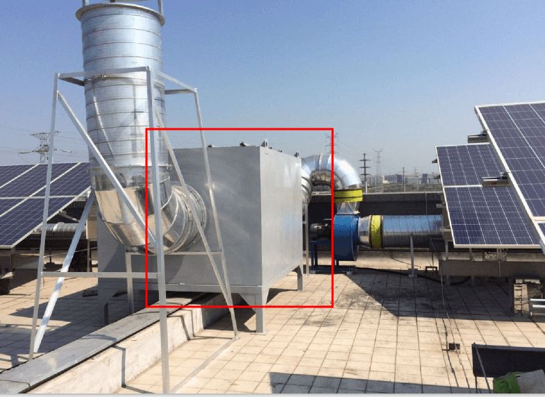 B.活性炭塔工作原理,车间含有有机气体或颗料斗物经获罩收集,管道输送有机气体进入活性炭塔,有机气体进入塔内时,风速顺间降下,气体内含的较大颗料斗杂物便自然沉降入塔底部,面溶入气体内的有机气体部分随气体流进活性炭过滤层,有机气进入炭层时,有机气体被活性炭吸附进炭内,而干净的空气穿过炭层进入出气仓,气体经过机械自吸后排入大气中。